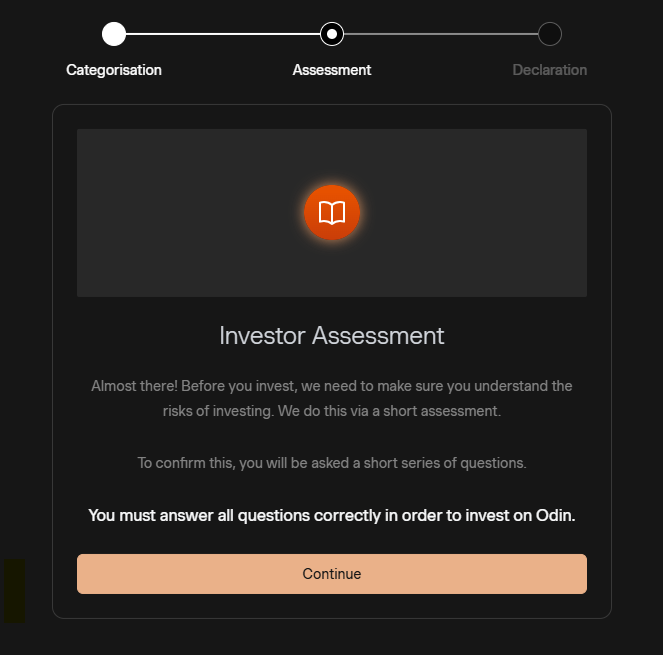 As part of our regulatory requirements, all investors must complete our appropriateness assessment questionnaire to ensure their suitability to invest on Odin.