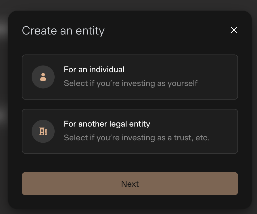 4. Once you have uploaded the documents and your entity has been approved, it will appear in your profile, allowing you to select it during the deal investor flow.